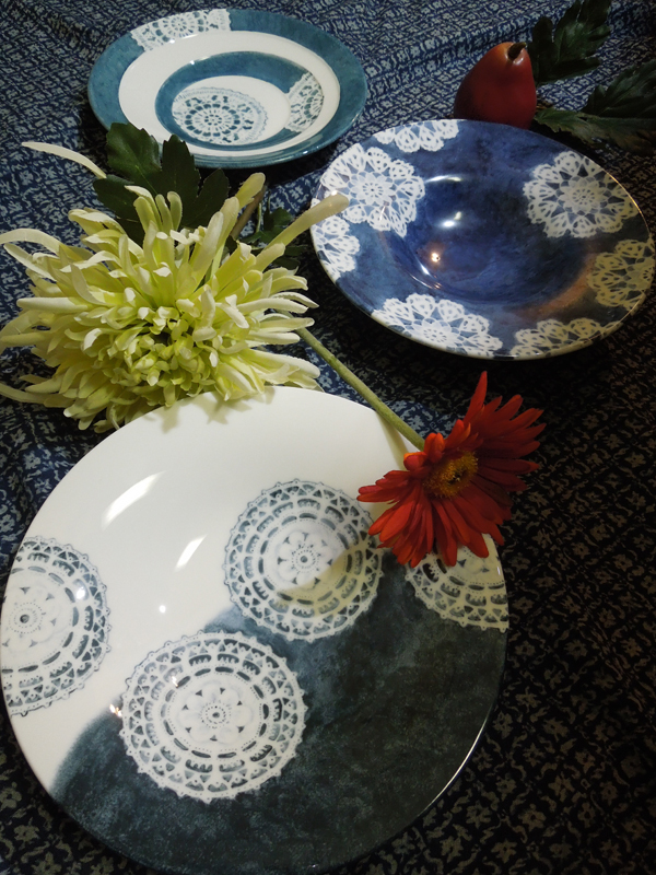 受容 調和 新たな空気 投稿日時: 2013年5月13日 投稿者: nonnon 「Doily」のお皿、三種。 パスタ皿とスープ皿2種。 これらのお皿は実は花器として描いた。 でも、何を入れても好き好きで。 入れるものにより、そのものと調和して、新しい空気を生む。 いつも思って描いているのは、「何かを入れるための器」という事。 器として美しいものであるだけでなく、そこに何かを入れて楽しむための器を作っていきたい。 今の季節のものでも、ちょっと違ったものを取り入れてみても、 その時の気分で食事や花を楽しんでもらえたらいいな…。